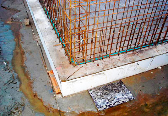 Among ordinary Bituthene® applications of liquid membrane there is hydro-insulation of distorted, irregular or stepped profiles, penetrations in piles, internal angles, pipes, grooves, etc. Bituthene® Liquid Membrane two components are mixed in-situ and applied with a trowel.