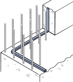 - Between foundation slab and support wall (e.g., support walls for structural seal sections and steel sheet piles).